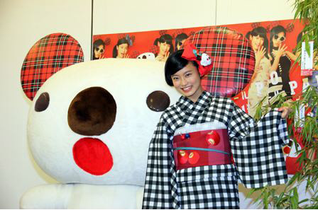 タレントの小島瑠璃子が7日、都内で行われたファッションビル:PARCOの夏のバーゲン「グランバザール」のキャンペーンモデルお披露目会見に白黒ギンガムチェック柄にりんごをあしらった浴衣姿で登場。「プライベートでの服は無難なので、エッジの効いたのが着られて嬉しい」と浴衣姿を嬉しそうにお披露目した。