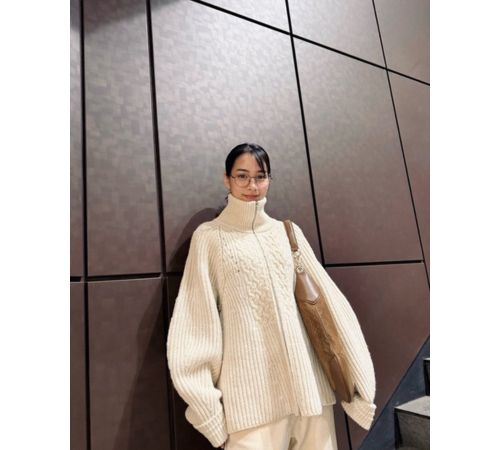 『この季節』と題して更新されたブログには、絵文字を交えながら“新しいニットを迎えた”、“こう見えて黄色です”と綴られ、、大きめのバッグとメガネにハイネックのざっくりとしたケーブル編みニット、さらにはワイドパンツ、白のブーツを合わせた淡色のワントーンコーデを披露している。