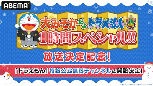 新しい未来のテレビ「ABEMA(アベマ)」は、“大みそかだよ!ドラえもん1時間スペシャル”の放送を記念し、12月29日(月)より「ドラえもん」特設公式無料チャンネルを期間限定で開設する。