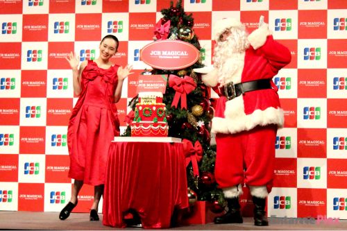 その後、発表会の終盤には特別ゲストのサンタクロースが登場し、飯豊と一緒にクリスマスツリーを点灯。