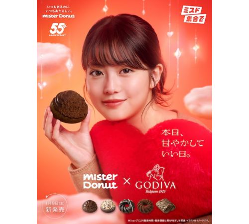 株式会社ダスキンが運営するミスタードーナツは、ベルギーのプレミアムチョコレートブランド「ゴディバ」とコラボレーションした新商品『Mister Donut×GODIVA』全5種類を1月9日(金)から期間限定発売する。本コレクションは、ミスタードーナツ日本での創業55周年とゴディバ創業100周年を記念し、共に仕上げた特別なアニバーサリーコレクションでこれまでにないプレミアムな商品となっている。