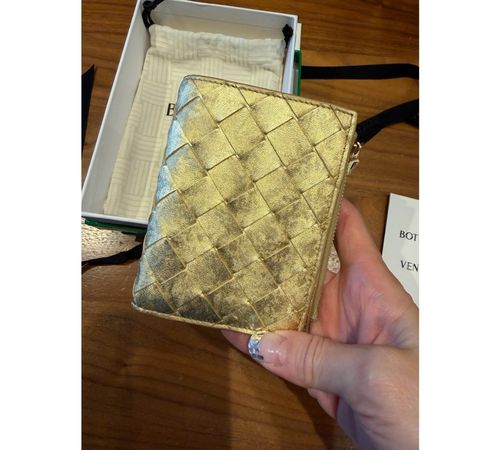 続けて、自宅に届いた『ボッテガ・ヴェネタ』の「ゴールド仕上げ レザー ミニ財布」の写真を公開。「使い勝手もよさそう」と気に入った様子でつづった。