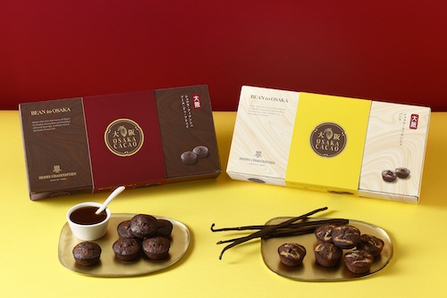 「大阪カカオ~ 大阪ショコラ・フィナンシェ~〈ソース・ドゥ・フリュイ〉」と「大阪カカオ~大阪ショコラ・フィナンシェ~〈バニラ〉」の2商品展開で、前者は関西の代表的なソースであるイカリソースをアクセントに加えたもの。