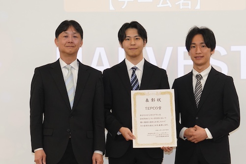 TEPCO賞は、電力を安定して届けることの難しさと大切さを体験的に学べる教育ボードゲームを提案した「HARVEST(明治大学)」。