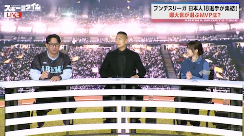 本番組は、“スポーツの熱狂を先取りする”ことを目指す新感覚のスポーツ番組。野球やサッカーを中心に、注目スポーツの最新情報を毎週日曜夜10時から生放送でお届け。本放送回では、元メジャーリーグ選手の川﨑宗則氏、元サッカー北朝鮮代表でJリーグでも活躍した鄭大世(チョン・テセ)氏がコメンテーターとして出演。