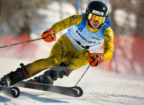 これまでもアルペンスキーをやっている息子を応援したり、帯同している様子、父としての思いなどをブログで発信してきた高橋。この日、「帰宅すると」と題してブログを更新すると、「写真が届いてた」と切り出し、ヘルメットとゴーグルを着け、黄色のレーシングスーツに身を包んだ息子が勢いよく雪煙を上げながらターンする迫力ある滑走ショットを複数枚公開。