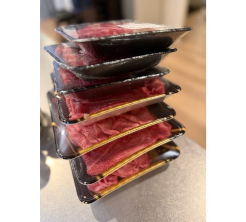 「楽ちんなのは????」と悩みつつも、「牛肉 調達 !!!」と牛しゃぶを選択したことを報告するとともに、パックに入った牛肉が積み重なった写真を公開。