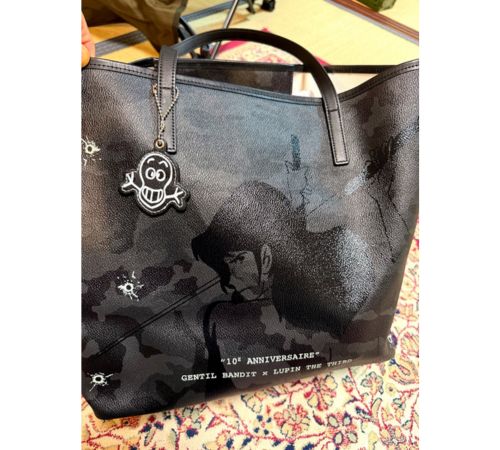 石川五右衛門のビジュアルがあしらわれた『ルパン三世』モチーフのシックなデザインのバッグを公開し、「とても使いやすい五エ門バージョンを」と紹介。