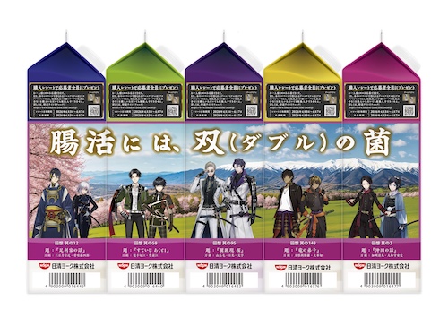 日清ヨーク株式会社は、「十勝のむヨーグルト」が「刀剣乱舞 ONLINE」とコラボレーションした「十勝のむヨーグルト 腸活には、双(ダブル)の菌キャンペーン」を4月5日(日)より実施する。