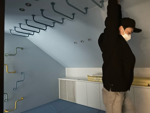 また、遊び部屋については「真っ青なフカフカクッションは、大成功でした」と紹介。うんていを試す夫の姿とともに「落ちても安全だ!ってくらいフカフカだった」と満足げな様子を見せ、「これから家づくりする方、おすすめです」と呼びかけた。
