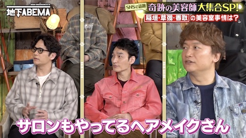 さらに番組では、EXIT・りんたろー。が稲垣、草彅、香取の美容室事情に迫る一幕も。「3人は美容室とか行かないんですか?」という質問に対し、香取が「(僕たちは)現場のヘアメイクさんの自宅とか、サロンもやってるヘアメイクさん(のところ)」と回答。貸切状態でカットしてもらっているという知られざるプライベートが明らかに。