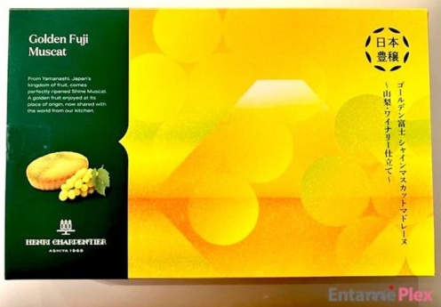 ゴールデンシャインマスカットの果皮までまるごと絞ったピューレをギュッと濃縮し、それをマドレーヌ生地とあわせ、アンリ・シャルパンティエが誇る製法で焼き上げる。果たしてその味は……ということで、話題の「ゴールデン富士シャインマスカットマドレーヌ〜山梨・ワイナリー仕立て〜」を試食してみた!